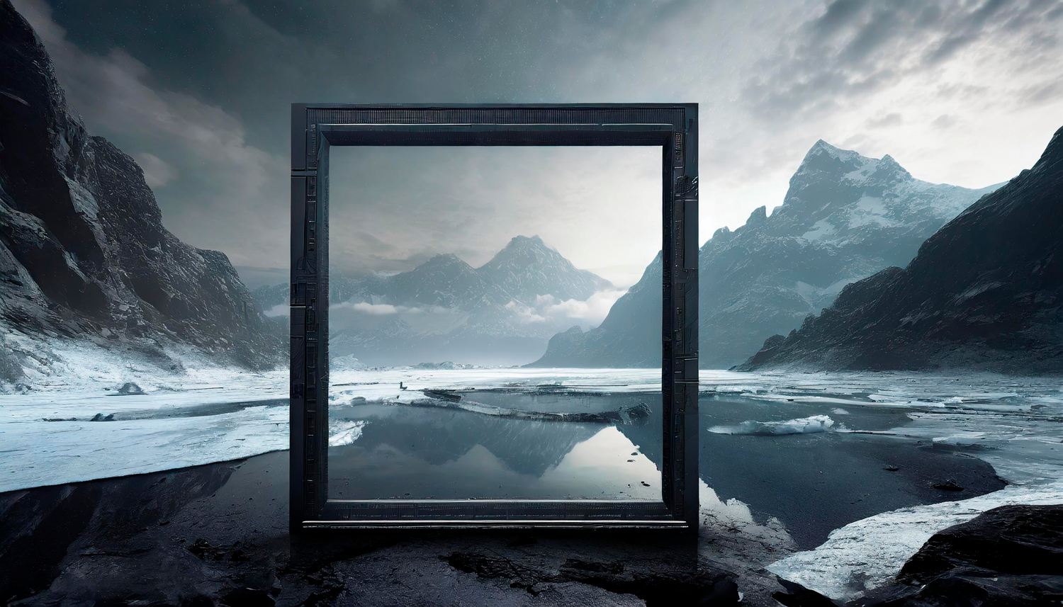 Gegenübergestellt zur Situation der Krankenschwester, finden sich KI-generierte dystopische Bilder des Planeten während des Kollaps, hervorgerufen durch die stattfindende ökologische Zerstörung.